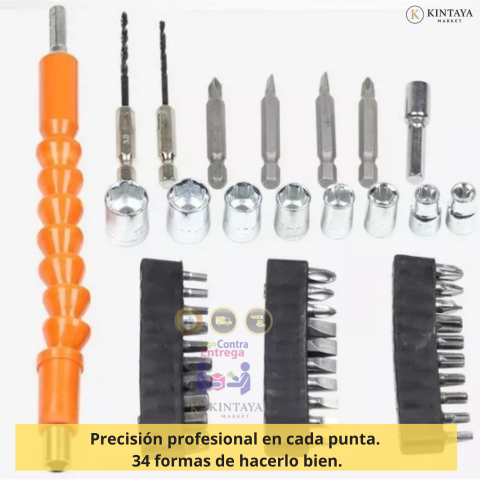 ✅ 34 puntas intercambiables: olvídate de buscar el destornillador correcto.